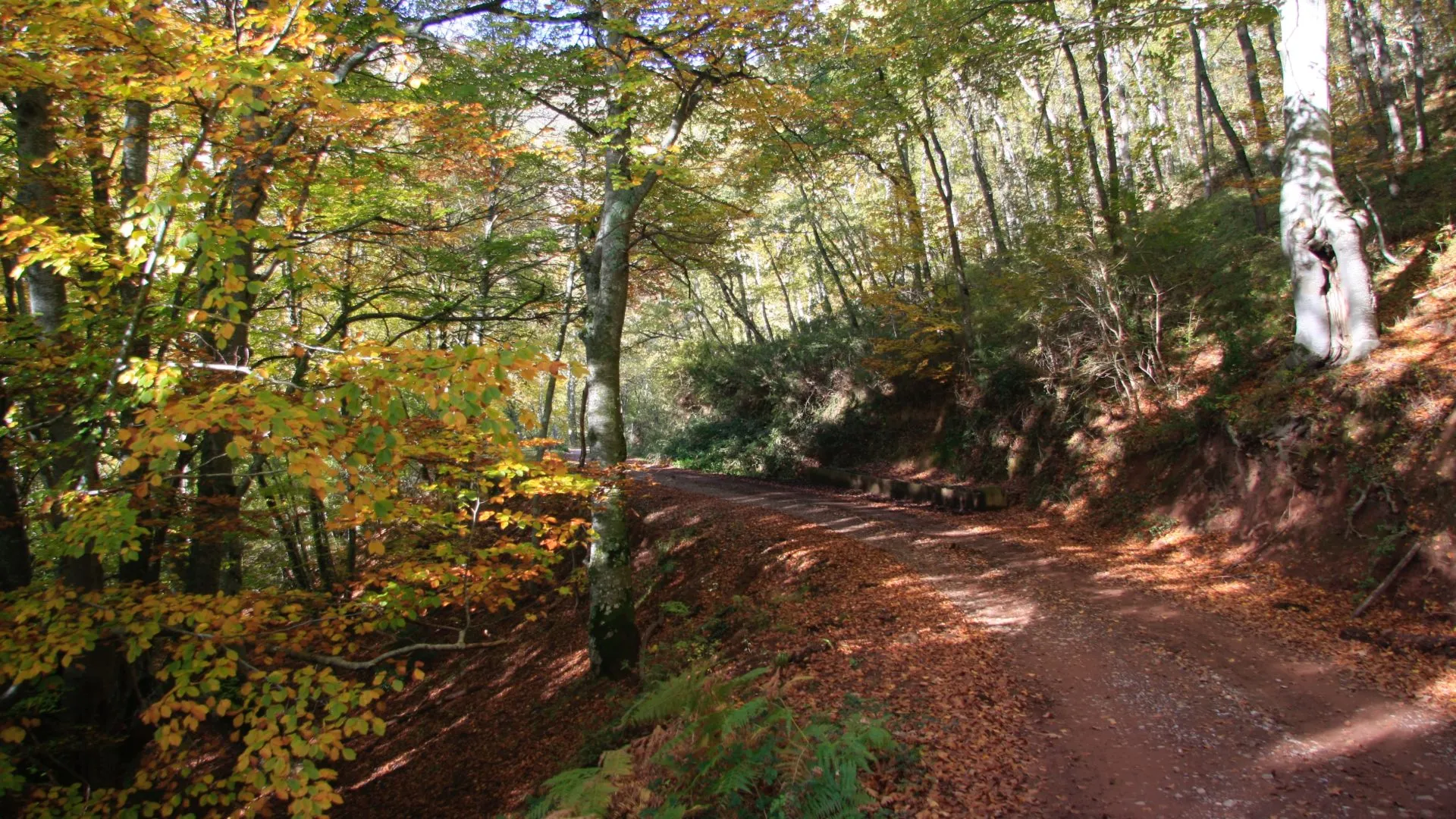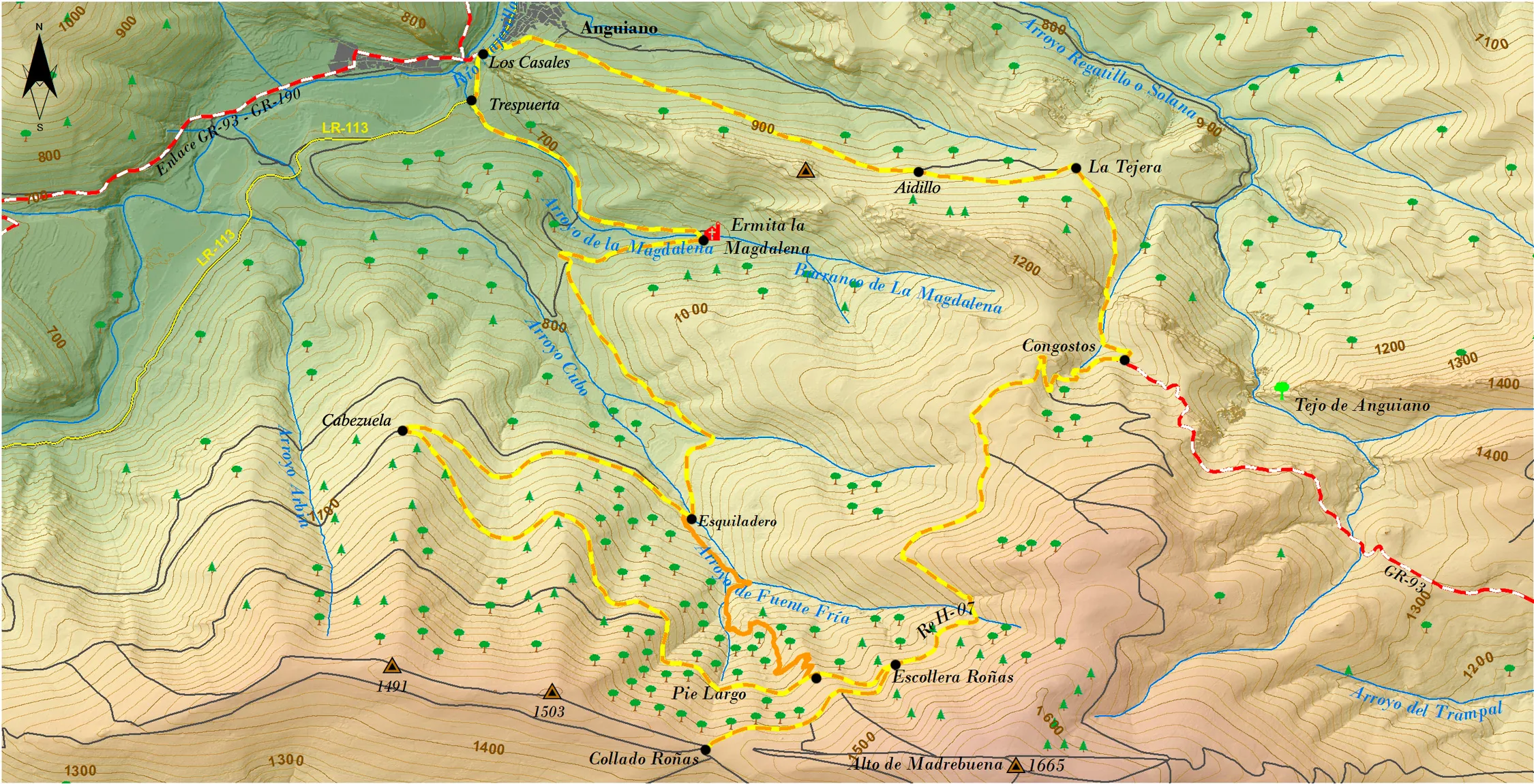 En este punto coincidimos con la Ruta 5. Nos desviamos a la izquierda por el GR-93 y seguimos descendiendo entre el hayedo, hasta las cercanÃas de Anguiano.
